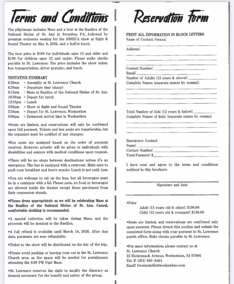 For all inquiries, please phone the Parish Office at (201) 863-6464 or submit the form.